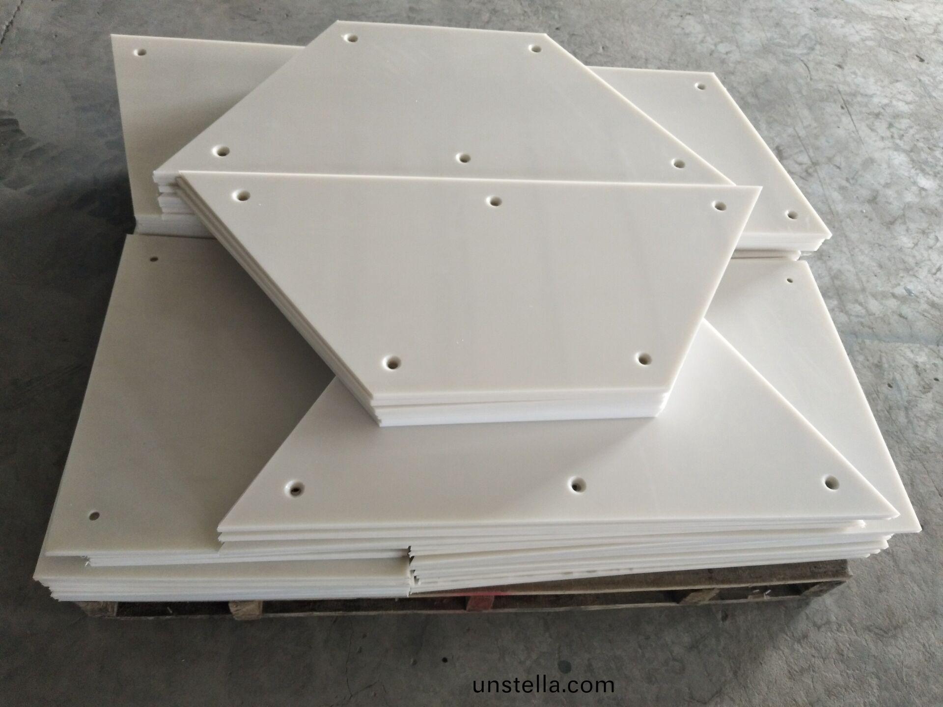 廣汎應用在工程車、自卸車、繙鬭車以及其他形(xing)式自卸設備(bei)上;煤倉襯闆、料倉襯闆、卸料鬭、霤槽襯闆(ban)、舩(chuan)艙內襯、軸承、齒輪、滑軌;篩闆、霤槽襯裏、車箱防水墊闆、泥(ni)頭車墊闆等耐磨抗粘結部分;軍事防護的屏蔽,搞衝(chong)擊的(de)設備部件;防輻射源屏蔽等。